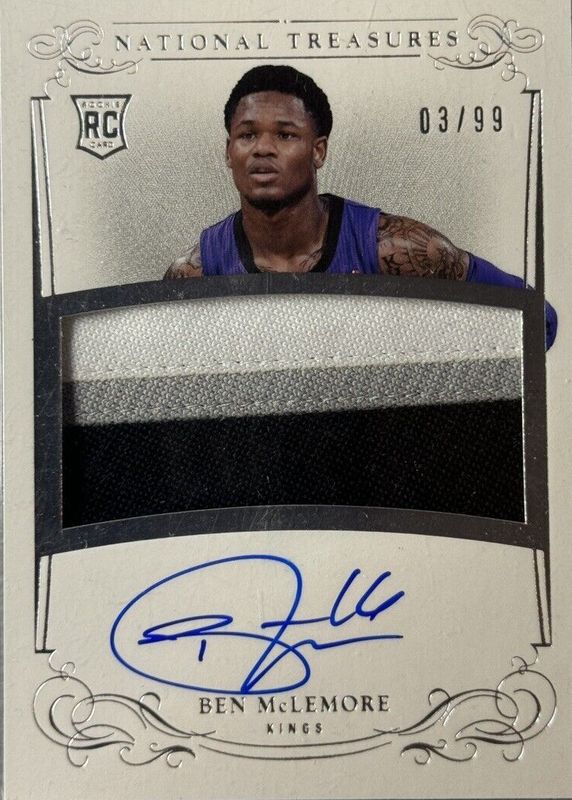The Ben McLemore 2013 National Treasures #118 Rookie Patch Auto /99 card in Raw condition has not changed in price in the last 30 days and was last sold for $35.16 .