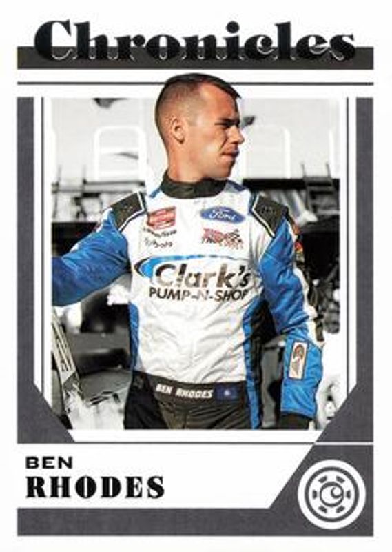 The Ben Rhodes 2023 Chronicles NASCAR #13 Base card is 1 of 25 Ben Rhodes' card variations in the 2023 Chronicles NASCAR set being tracked by Sports Card Investor, including Blue /199, Red /99, Purple /25, Gold /10, and Black /1.