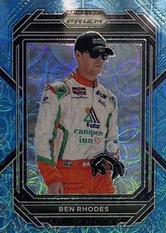 The Ben Rhodes 2023 Prizm NASCAR #37 Carolina Blue Scope /99 card is 1 of 39 Ben Rhodes' card variations in the 2023 Prizm NASCAR set being tracked by Sports Card Investor, including Base, Hyper Blue & Carolina Blue, Hyper Purple & Yellow, Reactive Orange, and Red.