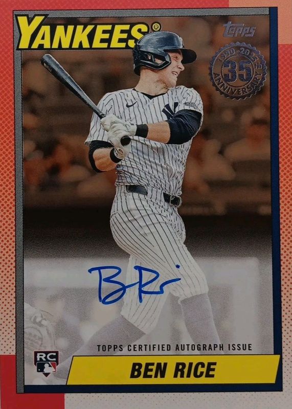 2025 Topps Series 1 - 1990 Topps Baseball Ben Rice #90A-BRI GOLD #47/50 AUTO RC