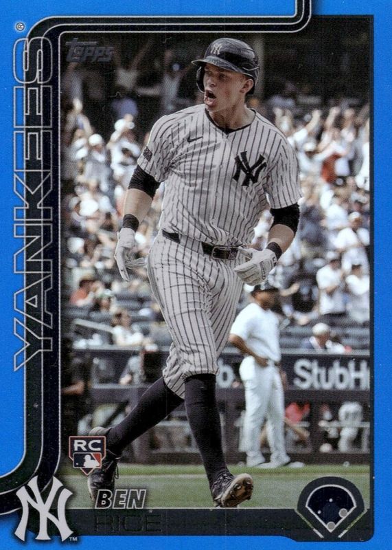 The Ben Rice 2025 Topps #337 Blue Holo Foil /150 Rookie card in Raw condition has not changed in price in the last 30 days and was last sold for $10.50 .