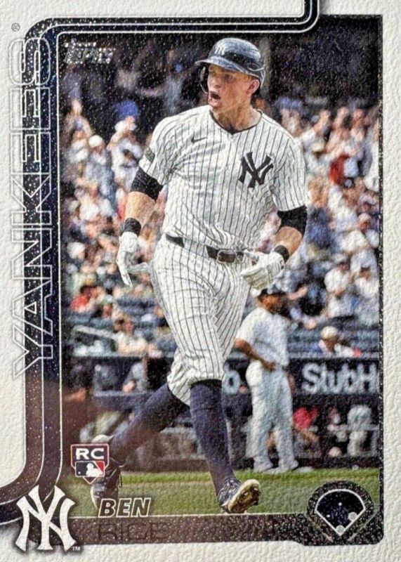 The Ben Rice 2025 Topps #337 Canvas /50 Rookie card in Raw condition has not changed in price in the last 30 days and was last sold for $44.99 .