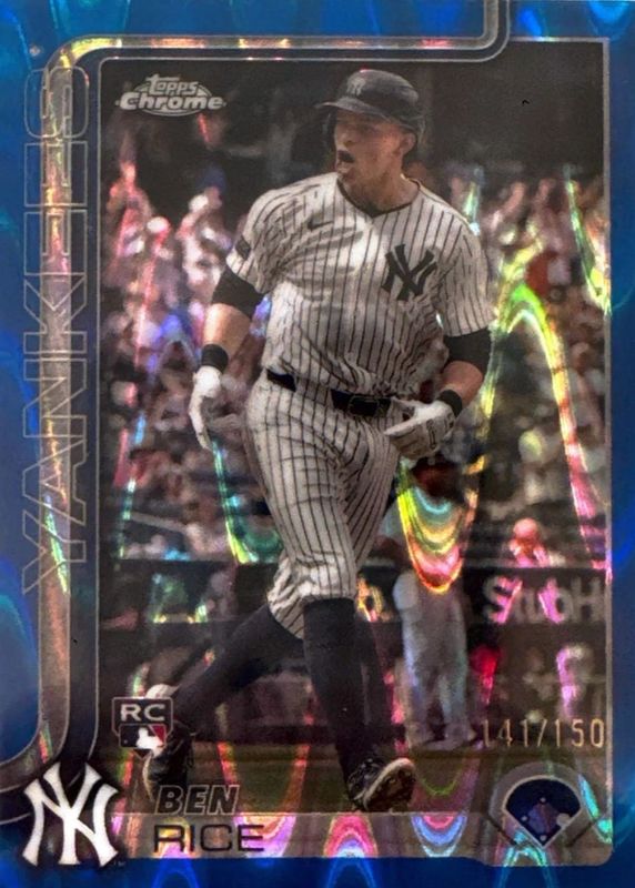 The Ben Rice 2025 Topps Chrome #139 Blue Lava Refractor /150 Rookie card in Raw condition has moved up $5.00 (+16.7%) in the last 30 days and was last sold for $35.00 .