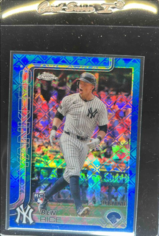 The Ben Rice 2025 Topps Chrome Logofractor Edition #139 Blue Refractor /150 Rookie card in Raw condition has moved up $11.56 (+49.9%) in the last 30 days and was last sold for $34.74 .