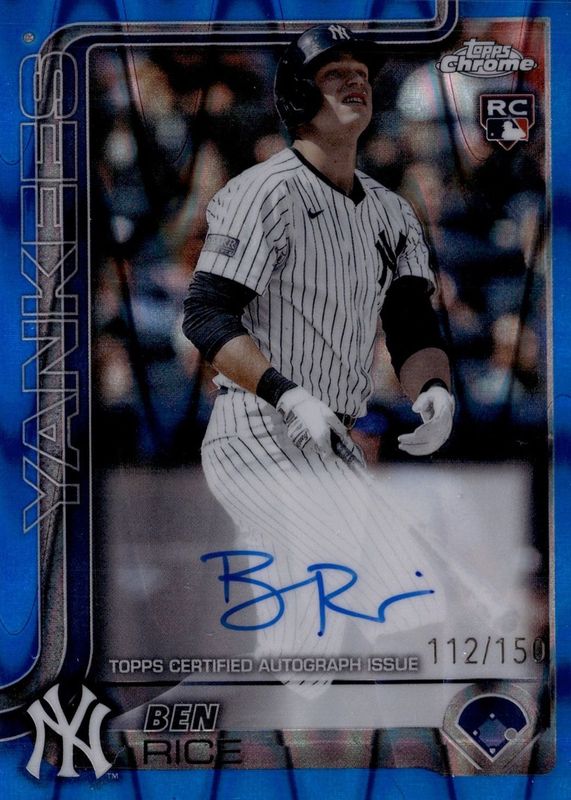 2025 Topps Chrome Rookie Auto Ben Rice #RA-BR Blue RayWave Refractor /150🔥🔥