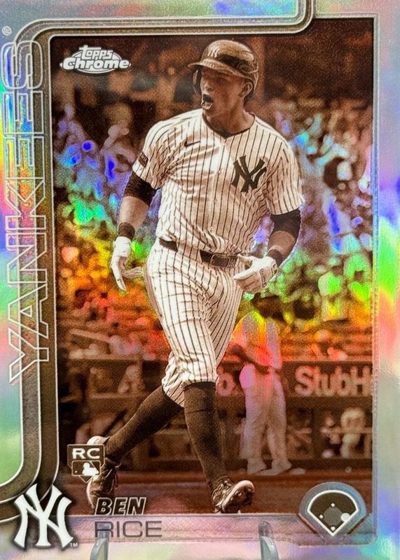 The Ben Rice 2025 Topps Chrome #139 Sepia Refractor Rookie card in Raw condition has moved up $4.41 (+445%) in the last 30 days and was last sold for $5.40 .
