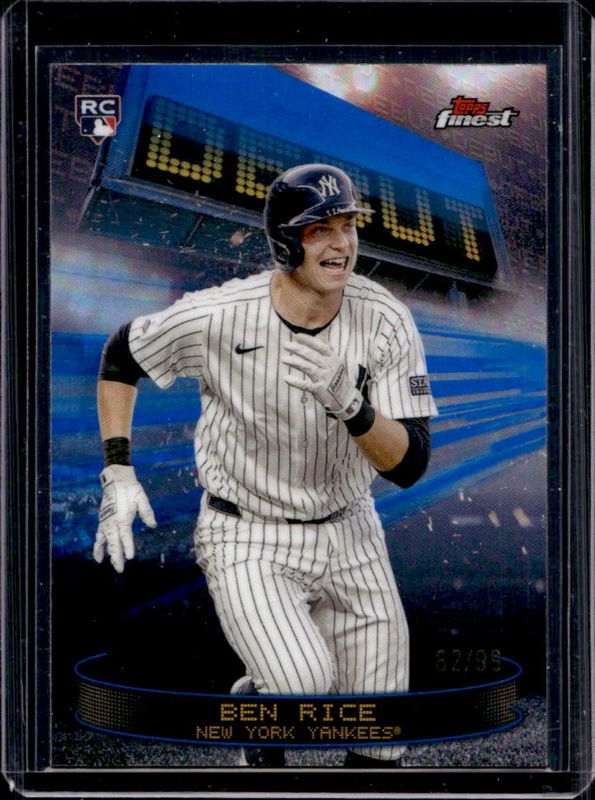 The Ben Rice 2025 Topps Finest #D-8 Debut - Blue Refractor /99 Rookie card is 1 of 70 Ben Rice's card variations in the 2025 Topps Finest set being tracked by Sports Card Investor, including Common, Common - Checkerboard Refractor, Common - Refractor, Common - Magenta Refractor /350, and Common - Sky Blue Refractor /325.