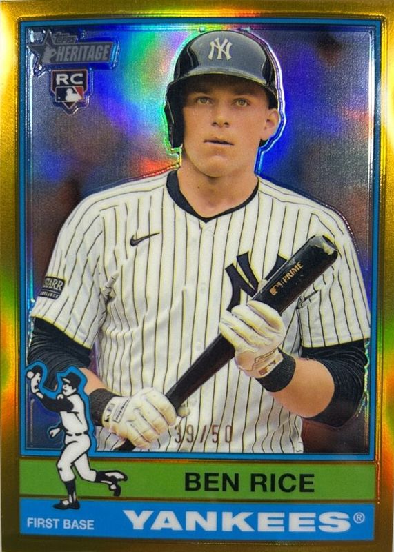 2025 TOPPS HERITAGE GOLD CHROME BEN RICE RC 29/50 #406 NEW YORK YANKEES