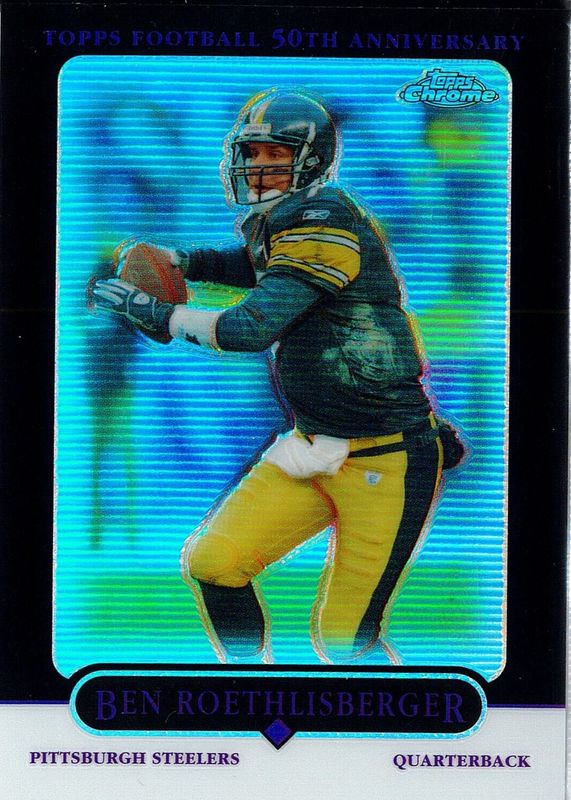 This card is 1 of 3 Ben Roethlisberger's card variations in the 2005 Topps Chrome set being tracked by Sports Card Investor, including Refractor, and Gold X-Fractor /399.