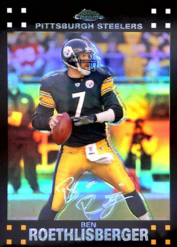 This card is 1 of 5 Ben Roethlisberger's card variations in the 2007 Topps Chrome set being tracked by Sports Card Investor, including Blue Refractor, X-Fractor, White Refractor /869, and Red Refractor /139.