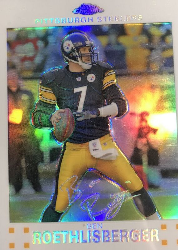 The Ben Roethlisberger 2007 Topps Chrome #TC62 White Refractor /869 card in Raw condition has not changed in price in the last 30 days and was last sold for $6.50 .