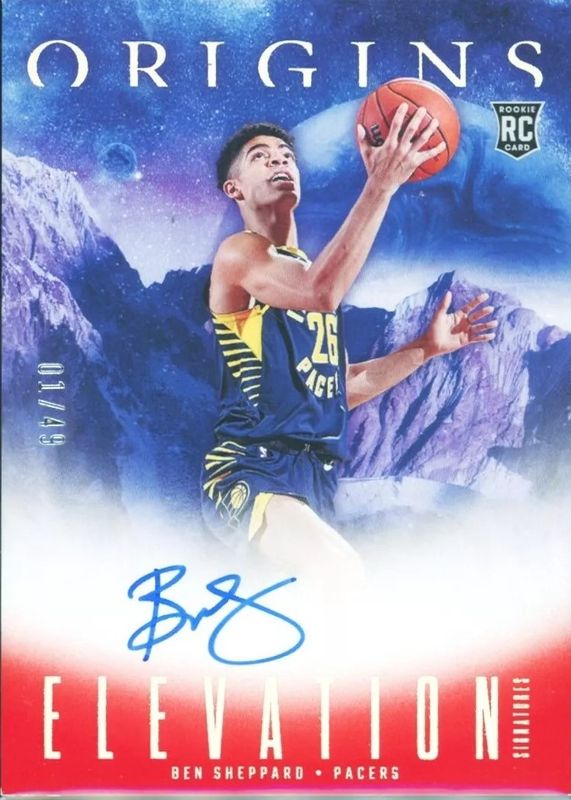 The Ben Sheppard 2023 Origins #ES-BSP Elevation Signatures - Red /49 Rookie card is 1 of 50 Ben Sheppard's card variations in the 2023 Origins set being tracked by Sports Card Investor, including Base, Basketballs, Cosmos, Red, and Tessellated.