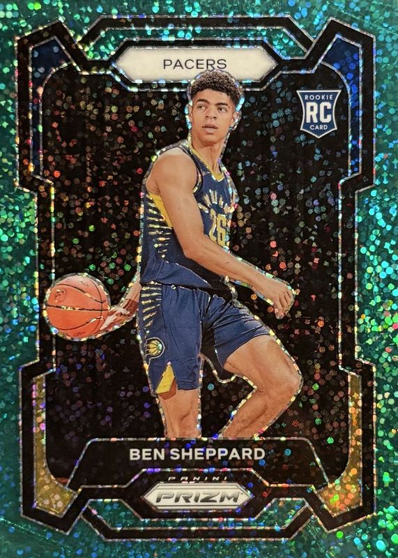 This card is 1 of 64 Ben Sheppard's card variations in the 2023 Prizm set being tracked by Sports Card Investor, including Base, Blue Wave, Choice Blue Yellow Green, Fast Break, and Green.