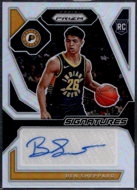 The Ben Sheppard 2023 Prizm #RSI-BEN Rookie Signatures - Silver card is 1 of 95 Ben Sheppard's card variations in the 2023 Prizm set being tracked by Sports Card Investor, including Base, Blue Wave, Choice Blue Yellow Green, Fast Break, and Green.