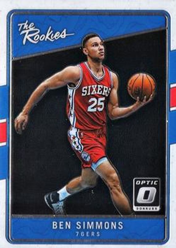 The Ben Simmons 2016 Optic #2 The Rookies card is 1 of 32 Ben Simmons' card variations in the 2016 Optic set being tracked by Sports Card Investor, including Base, Checkerboard, Holo, Purple, and Rookie Kings.