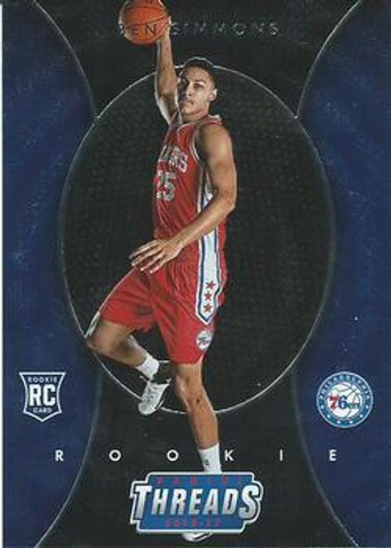 The Ben Simmons 2016 Threads #258 Base Rookie card is 1 of 18 Ben Simmons' card variations in the 2016 Threads set being tracked by Sports Card Investor, including #209 Base, #248 Base, #156 Base, #156 Century Proof Dazzle, and #156 Century Proof Holo.