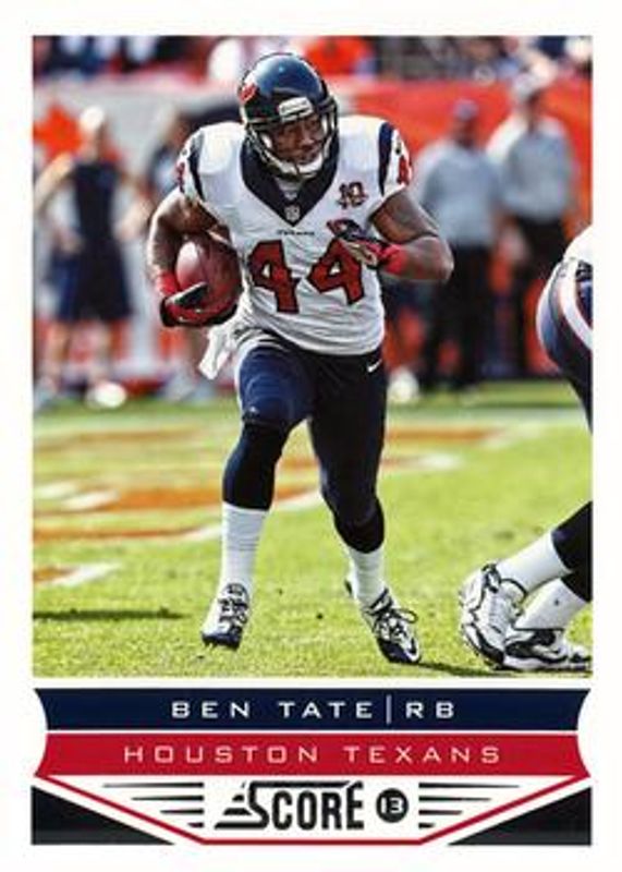 The Ben Tate 2013 Score #87 Base card is 1 of 12 Ben Tate's card variations in the 2013 Score set being tracked by Sports Card Investor, including Scorecard, Showcase /99, Gold Zone /50, Artist Proofs /32, and Red Zone /30.
