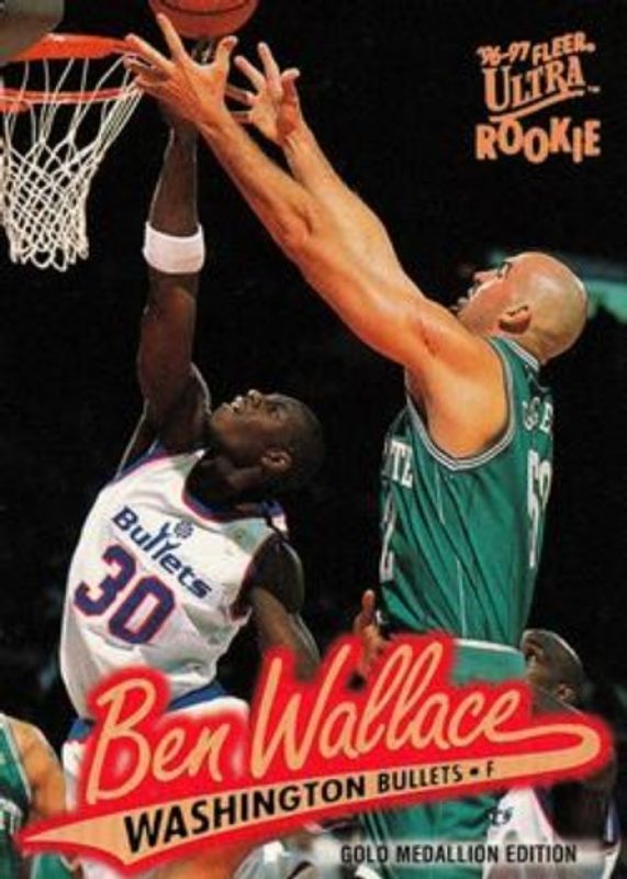 The Ben Wallace 1996 Fleer Ultra #G-263 Gold Medallion Rookie card is 1 of 3 Ben Wallace's card variations in the 1996 Fleer Ultra set being tracked by Sports Card Investor, including Base, and Platinum Medallion.
