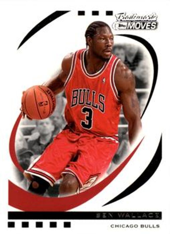 The Ben Wallace 2006 Topps Trademark Moves #39 Base /149 card is 1 of 5 Ben Wallace's card variations in the 2006 Topps Trademark Moves set being tracked by Sports Card Investor, including Foil /75, Rainbow /35, Wood /19, and Wood Red /10.