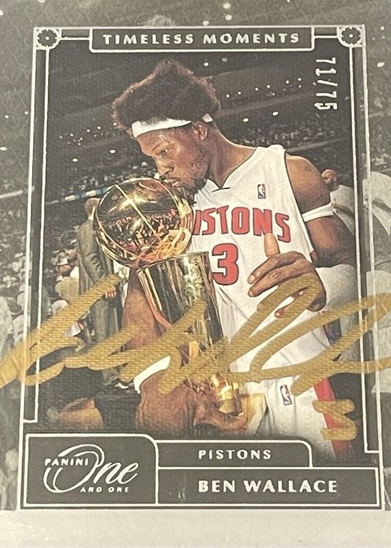 The Ben Wallace 2020 One and One #TML-BWL Timeless Moments Autographs (/75) card in Raw condition has not changed in price in the last 30 days and was last sold for $261.00 .