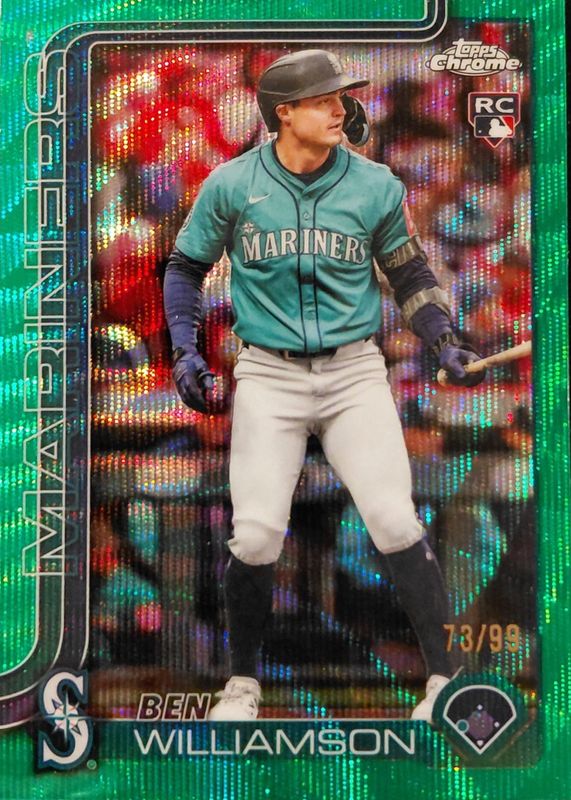 The Ben Williamson 2025 Topps Chrome Update #USC168 Green Wave Refractor /99 Rookie card in Raw condition has moved up $0.51 (+6.4%) in the last 30 days and was last sold for $8.50 .