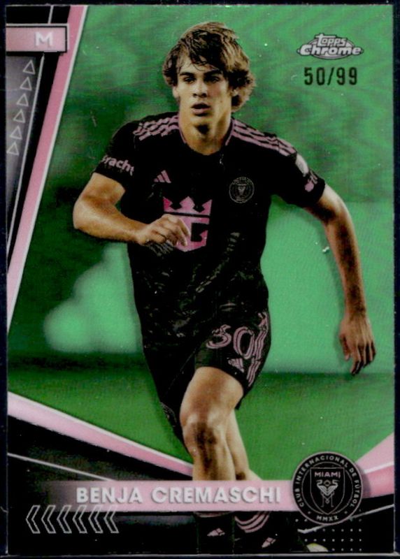The Benja Cremaschi 2024 Topps Chrome MLS #39 Neon Green Refractor /99 card is 1 of 37 Benja Cremaschi's card variations in the 2024 Topps Chrome MLS set being tracked by Sports Card Investor, including Base, Aqua Lava Refractor, Gold Lava Refractor, Neon Green Lava Refractor, and Prism Refractor.