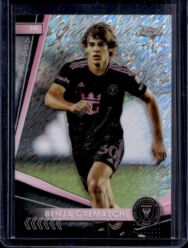 The Benja Cremaschi 2024 Topps Chrome MLS #39 Shimmer Refractor /7 card is 1 of 37 Benja Cremaschi's card variations in the 2024 Topps Chrome MLS set being tracked by Sports Card Investor, including Base, Aqua Lava Refractor, Gold Lava Refractor, Neon Green Lava Refractor, and Prism Refractor.