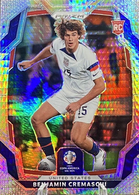 The Benjamin Cremaschi 2024 Prizm Copa America #164 Hyper Rookie card in Raw condition has not changed in price in the last 30 days and was last sold for $5.50 .