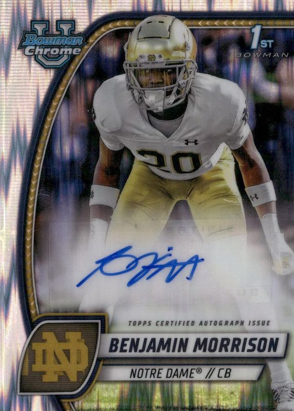 2024 Bowman U Chrome Benjamin Morrison Autograph Stealth Refractor Notre Dame