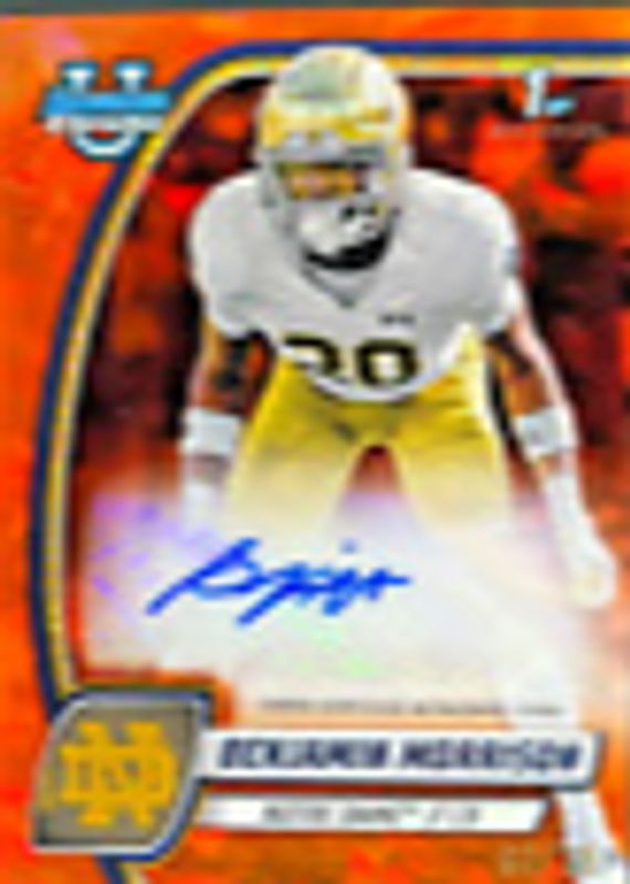 2024 Bowman Chrome U SAPPHIRE Benjamin Morrison 1st ORANGE AUTO /25 Notre Dame
