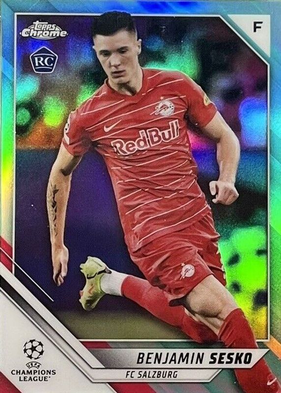 2021-22 Topps Chrome UEFA Benjamin Sesko RC Rookie Aqua 5/199 Salzburg JS1SHE