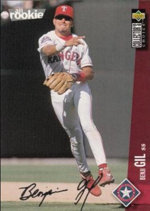 The Benji Gil 1996 Upper Deck Collector's Choice #322 Silver Signatures card is 1 of 6 Benji Gil's card variations in the 1996 Upper Deck Collector's Choice set being tracked by Sports Card Investor, including #322 Base, #333 Base, #322 Gold Signatures, #333 Gold Signatures, and #333 Silver Signatures.