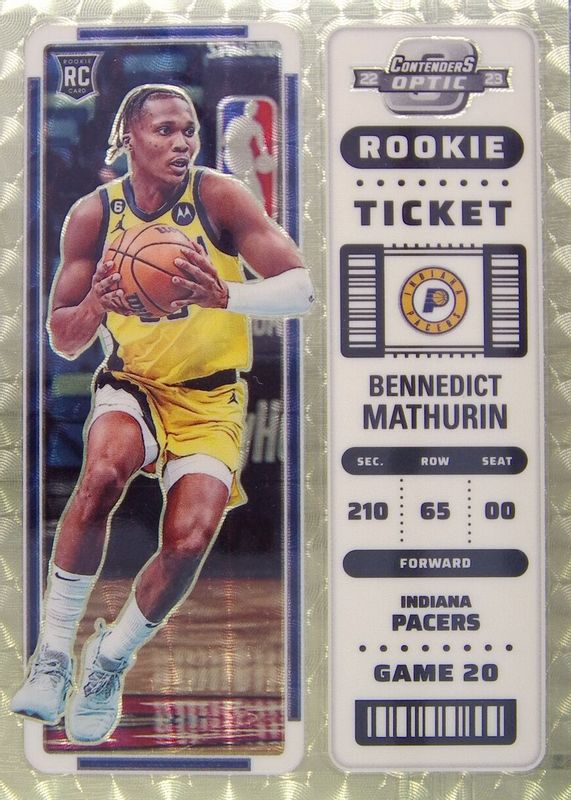 This card is 1 of 72 Bennedict Mathurin's card variations in the 2022 Contenders Optic set being tracked by Sports Card Investor, including Asia, Asia Red Wave, Red, Silver, and Blue /99.