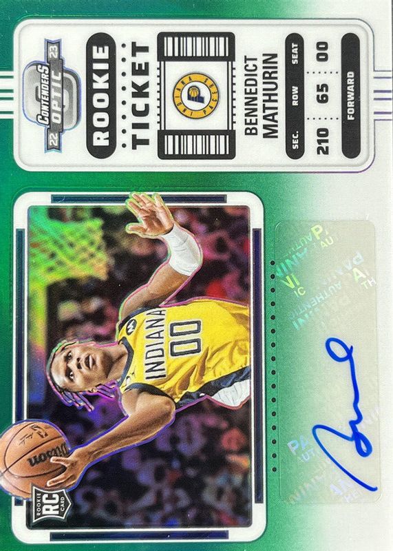 Auctions Ending Soon for Bennedict Mathurin 2022 Contenders Optic #128 Rookie Ticket Auto Variation - Green /75 RAW