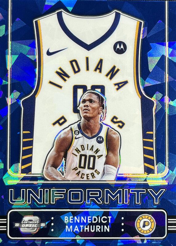 2022-23 Contenders Optic Bennedict Mathurin Uniformity Blue Cracked Ice RC /75