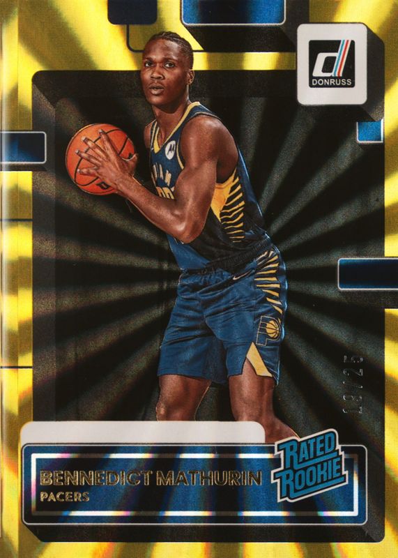 This card is 1 of 27 Bennedict Mathurin's card variations in the 2022 Donruss set being tracked by Sports Card Investor, including Base, Choice, Holo Green Laser, Holo Red & Gold Laser, and Press Proof Silver.