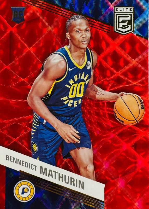 This card is 1 of 35 Bennedict Mathurin's card variations in the 2022 Elite set being tracked by Sports Card Investor, including Base, Asia Hyper Red & Green, Aspirations (/99), Orange, and Status (/1).