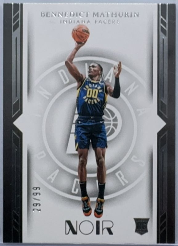 The Bennedict Mathurin 2022 Noir #173 Base /99 Rookie card is 1 of 62 Bennedict Mathurin's card variations in the 2022 Noir set being tracked by Sports Card Investor, including #143 Association Edition /99, #143 Base /99, #373 Base /99, #333 Base /99, and #295 Base /99.