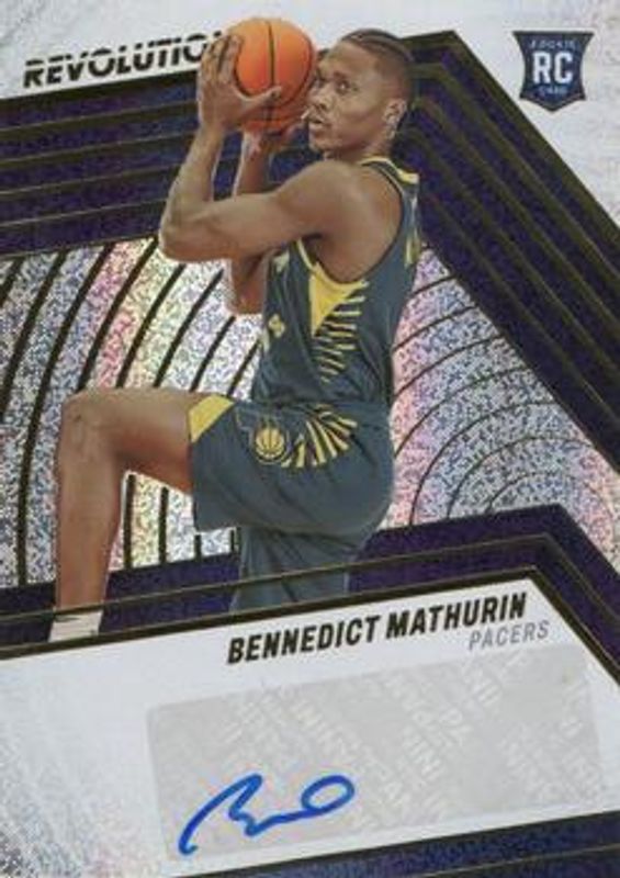 The Bennedict Mathurin 2022 Revolution #RA-BNM Rookie Autographs card is 1 of 44 Bennedict Mathurin's card variations in the 2022 Revolution set being tracked by Sports Card Investor, including Base, Asia Red, Astro, Chinese New Year, and Fractal.