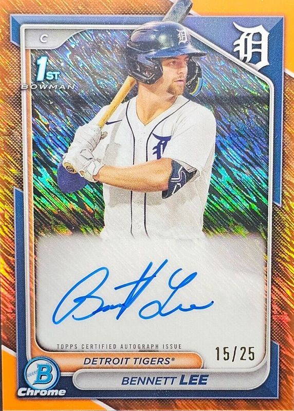 Recent Sales of Bennett Lee 2024 Bowman Chrome #CPA-BL Prospect Auto - Orange Shimmer Refractor /25 (1st) Raw