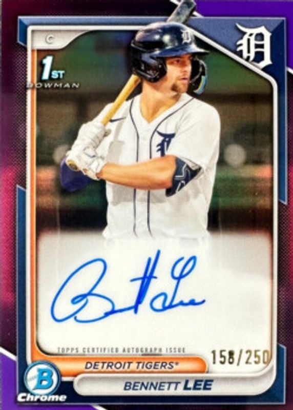 2024 Bowman Chrome Bennett Lee Auto Purple Refractor 1st Prospect #27/250 Tigers