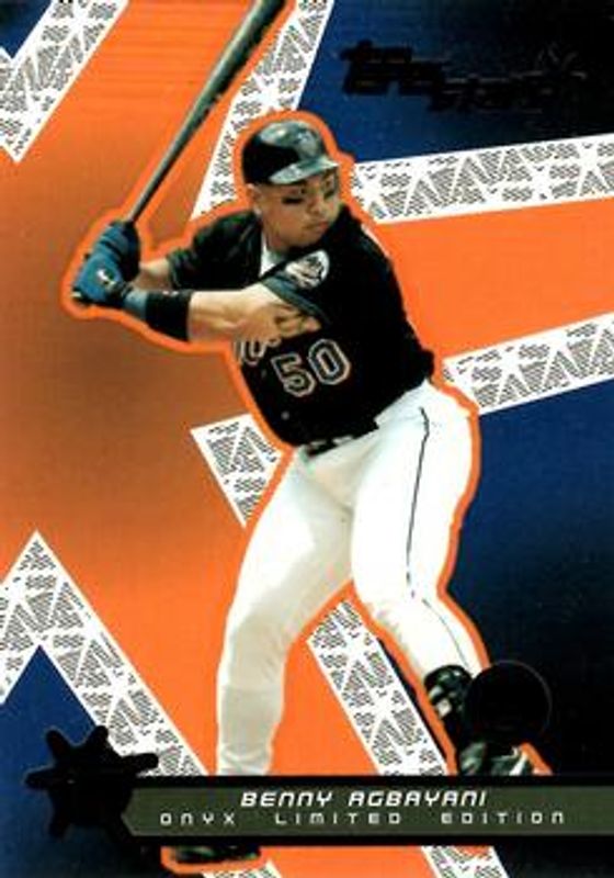 The Benny Agbayani 2001 Topps Stars #14 Onyx /99 card is 1 of 4 Benny Agbayani's card variations in the 2001 Topps Stars set being tracked by Sports Card Investor, including Base, Gold /499, and Elimination.