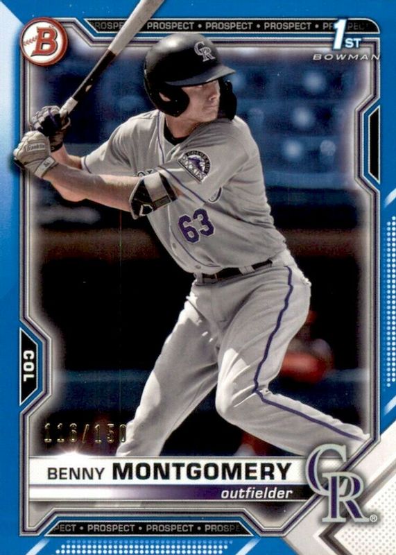 2021 Bowman Draft BENNY MONTGOMERY Blue 1st RC #'d 63/150 #BD-84 Rockies