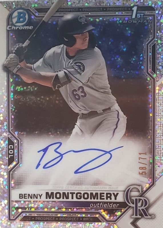 Auctions Ending Soon for Benny Montgomery 2021 Bowman Draft #CDA-BM Chrome DP Auto - Sparkle Refractor /71 (1st) RAW