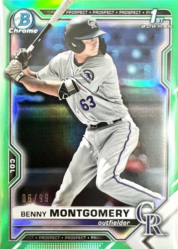2021 Bowman Draft Benny Montgomery Chrome Green Refractor /99 Rockies