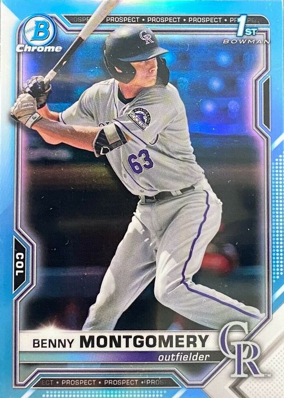 2021 Bowman Draft Chrome Sky Blue Refractor Benny Montgomery Colorado Rockies