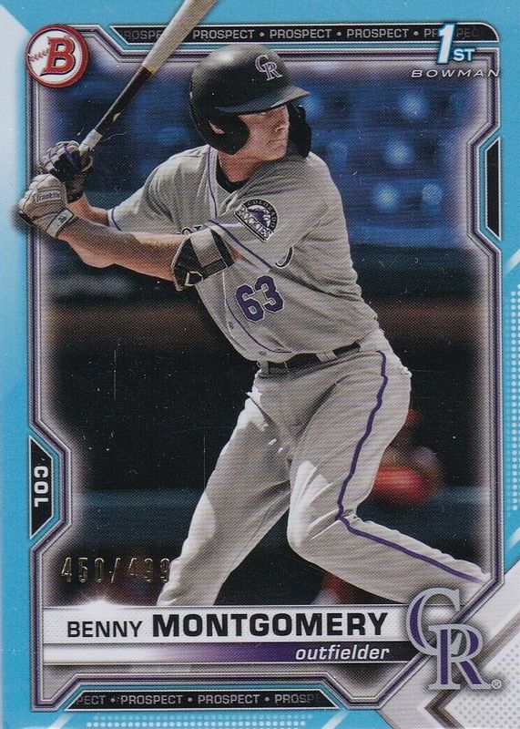 2021 Bowman Draft BENNY MONTGOMERY 1st Sky Blue /499 - Colorado Rockies