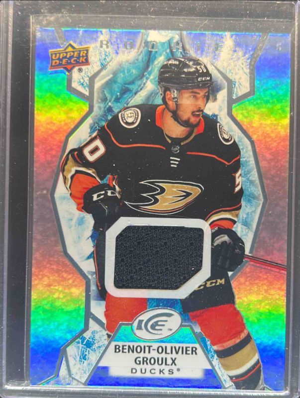The Benoit-Olivier Groulx 2021 Upper Deck Ice #111 Jersey Rookie card is 1 of 24 Benoit-Olivier Groulx's card variations in the 2021 Upper Deck Ice set being tracked by Sports Card Investor, including #111 Base /999, #217 Base /999, #111 Ice Blue, #111 Lavender, and #111 Orange.