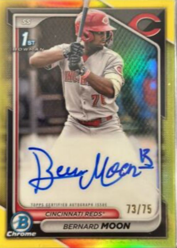 2024 Bowman Chrome Bernard Moon Auto 1st Yellow Refractor 57/75 #CPA-BMO Reds