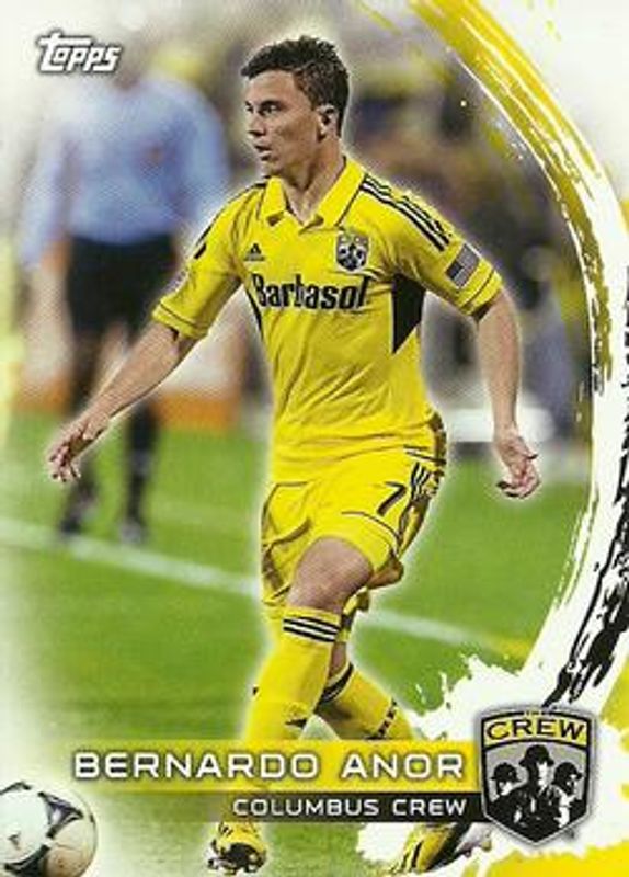 The Bernardo Anor 2014 Topps MLS #168 Base Rookie card is 1 of 11 Bernardo Anor's card variations in the 2014 Topps MLS set being tracked by Sports Card Investor, including Purple /99, Blue /50, Gold /25, Black /10, and Brazilian /5.